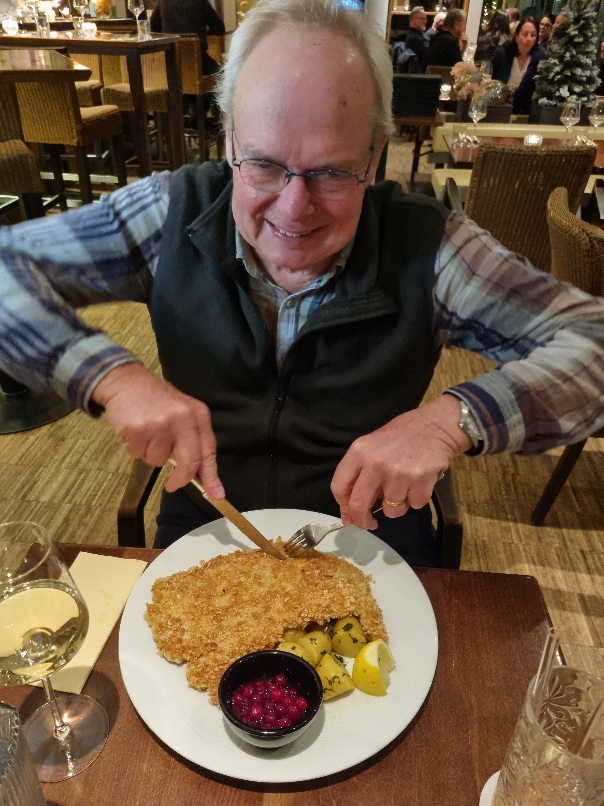 Vi hade tänkt ta bergsbanan och de två liftarna upp till Top of Innsbruck på 2 200 meters höjd, men då fick vi lära oss ett nytt ord på tyska, Herbstrevision. Alltså det underhållsarbete som planeras in på bergsbanan och kabinbanorna nu i november. Sommarsäsongen är definitivt över och vintersäsongen har inte börjat ännu. Men vi fick hjälp att hitta en buss som gick upp till kabinbanans dalstation, och därifrån kunde vi vandra uppför berget till kaffestugan Arzler Arm. Därifrån såg man hela Innsbruck och över till det norra bergsmassivet.