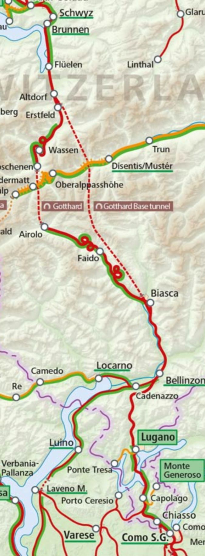 Idag fick vi vara med om ett tåg som klättrade i tunnlarna för att komma upp till Gotthardtunneln som invigdes 1882 och är som är 15 km lång.