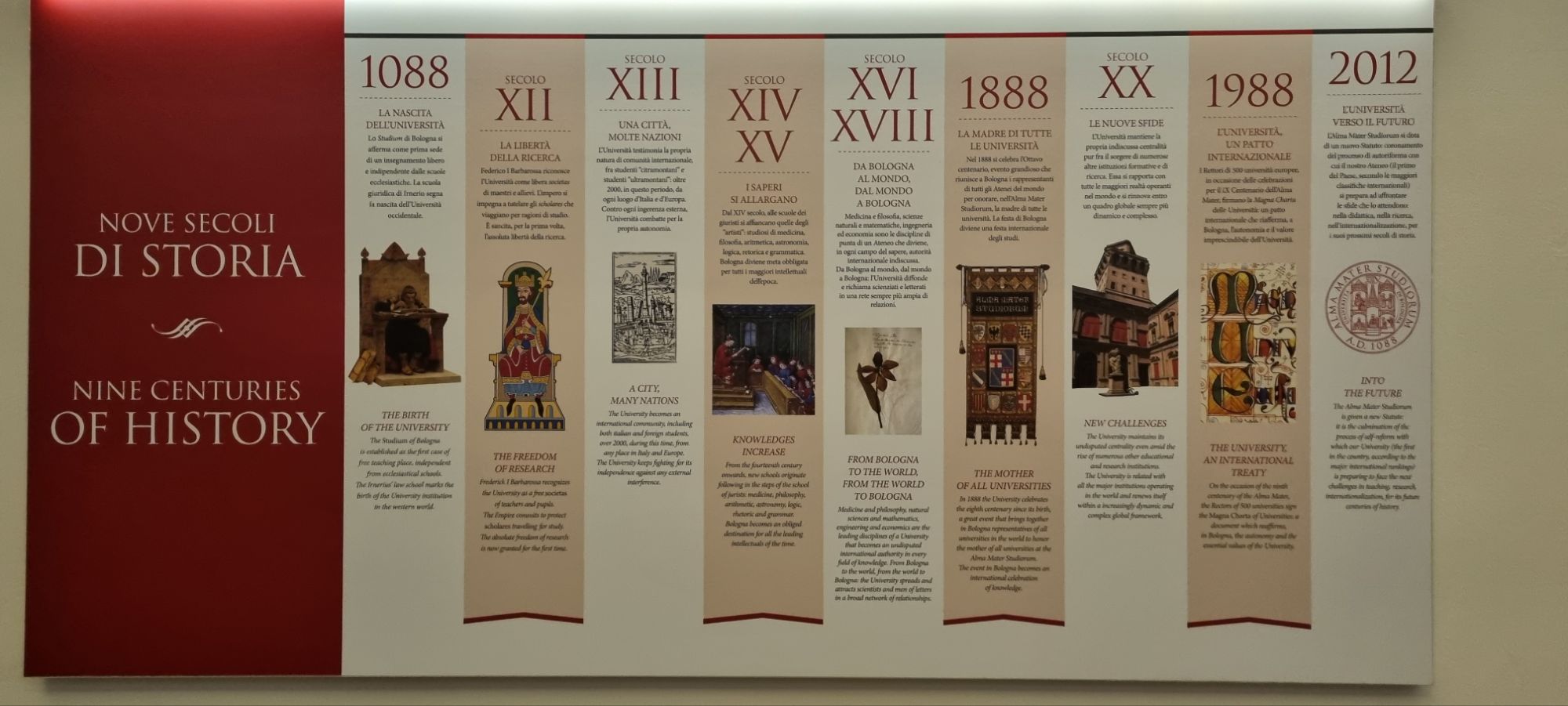 Bologna har världens äldsta fria universitet, som alltså inte drevs av kyrkan. De började undervisa i juridik redan 1088 och det kom studenter från hela Europa hit.
