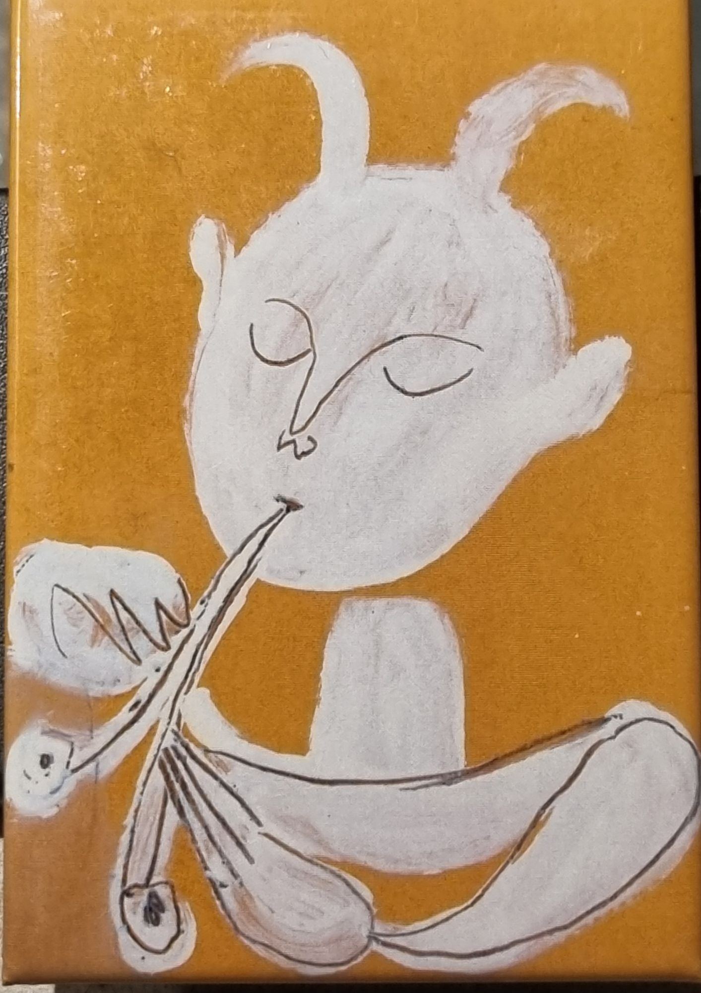 Men vänta nu: Har vi inte sett tvåflöjtsspelare förut? Vi kollar igenom bilderna från Antibes Picasso-museum och hittar denna bild som han jobbade mycket med: