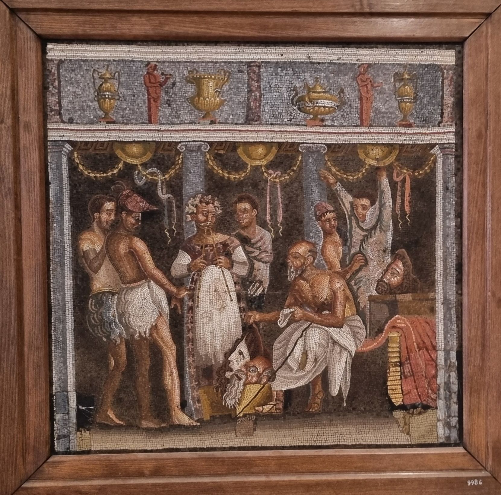 Många av de mosaiker, fresker och statyer som hittats i Pompeji och Herculanium har förts till det arkeologiska museet här i Neapel, så vi började där.