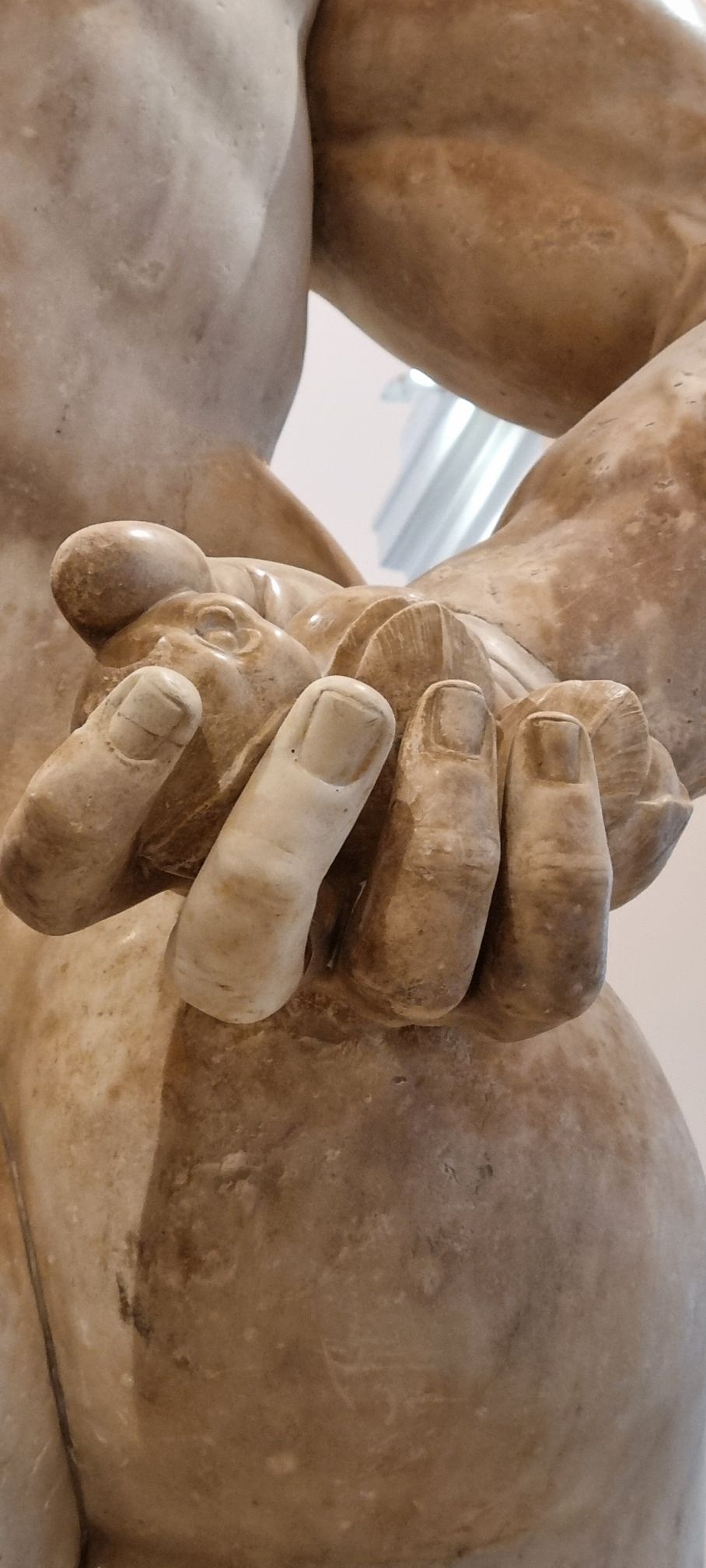 Eller Herkules i marmor när han hade fångat de tre äpplena som han hade fått i uppgift att hämta från världens ände.