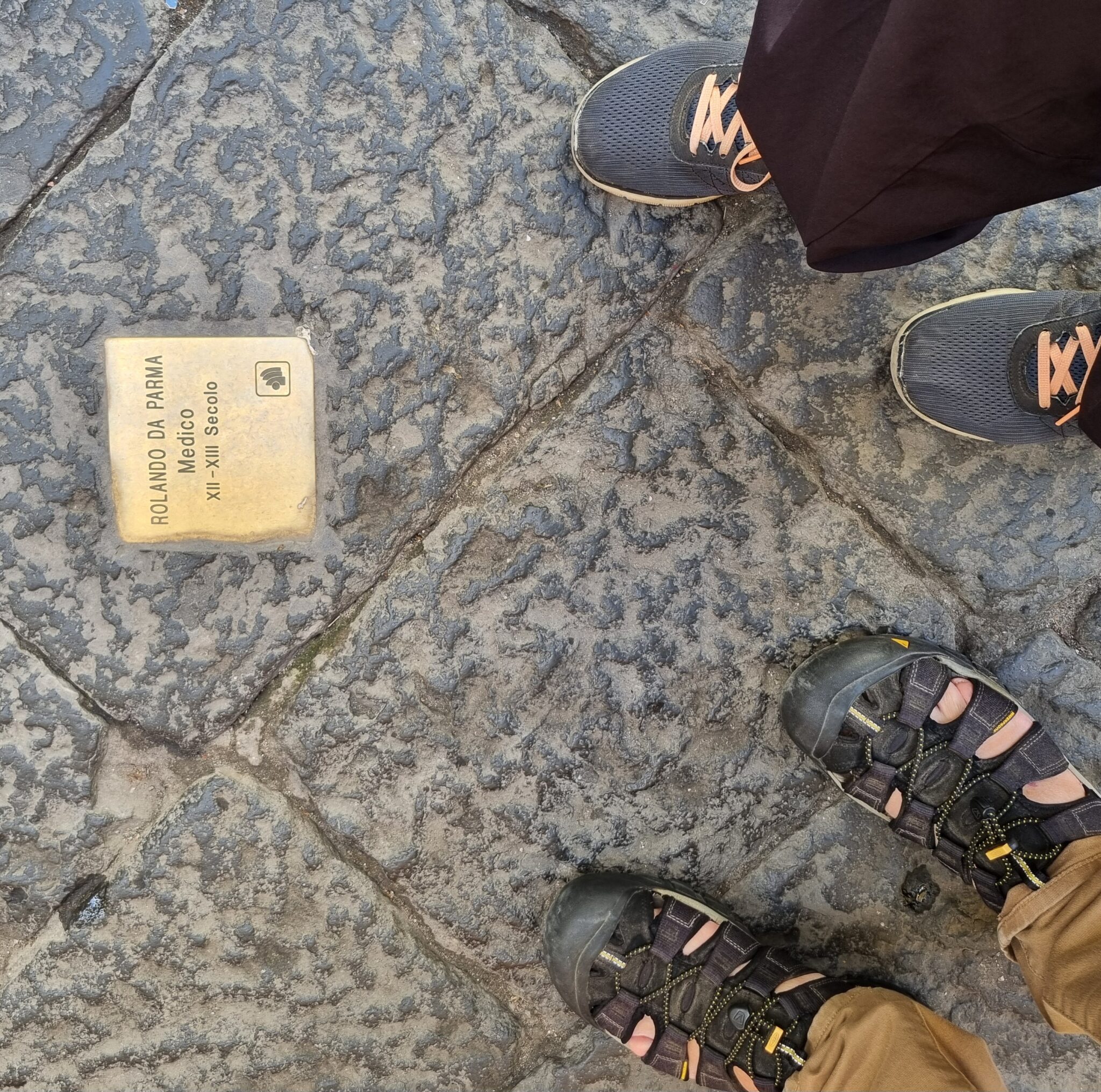 Staden har valt att hylla många av de medeltida medicinarna och kirurgerna med inskriptioner i mässing i gatorna: