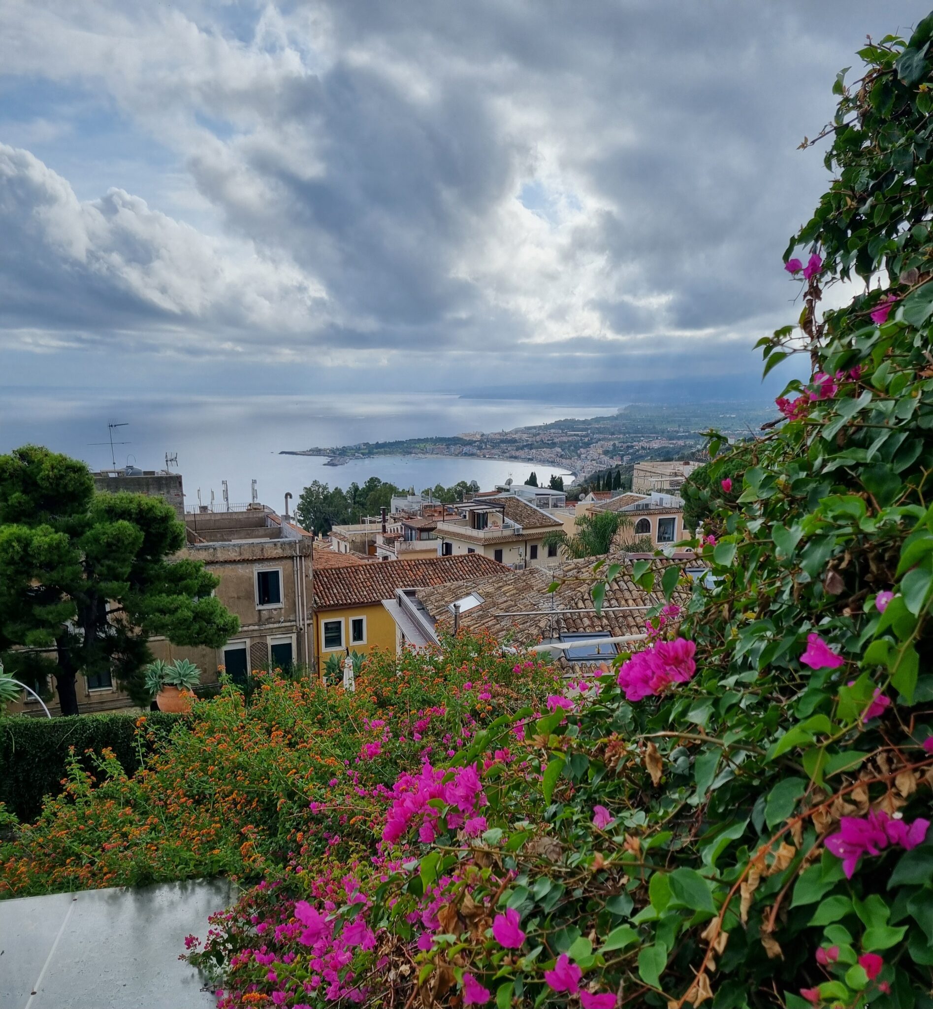 Vi tog tåget till Taormina och bussen uppför berget. Taormina var en gång i tiden ett obligatoriskt stopp för aristokratiska ynglingar som var ute på sin Grand Tour. Det verkar fortfarande vara ett populärt mål för de som ska se Europa. Nu är det dock många fler som har råd att resa hit än på den tiden, så det är trångt i gränderna och i huvudstråket är det en överväldigande mängd turister från jordens alla hörn som kryssar mellan Louis Vuitton, Rolex och rent krimskrans. Men man kan ändå sitta på ett kafé och prata med ett par från Krakow och ett par från Amsterdam och diskutera likheter och skillnader mellan länder i Europa. Valresultatet i Nederländerna tyckte vi alla var positivt. Så lite av en bildningsresa blir det även för oss.